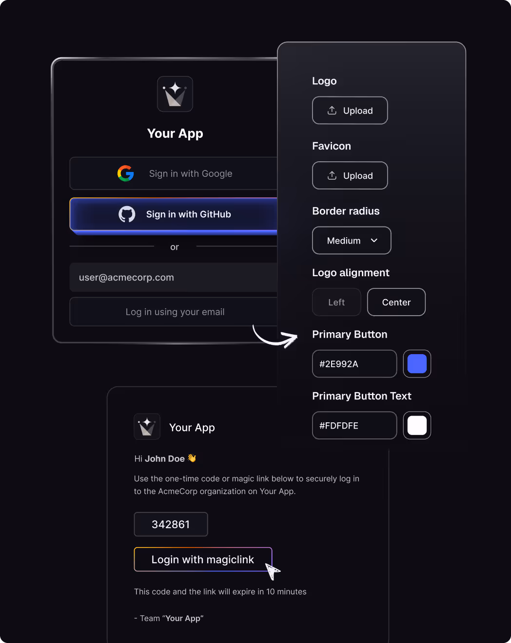 "user@example.com" ,{ magiclinkAuthUri: "https://yourapp.com/verify" }