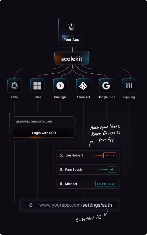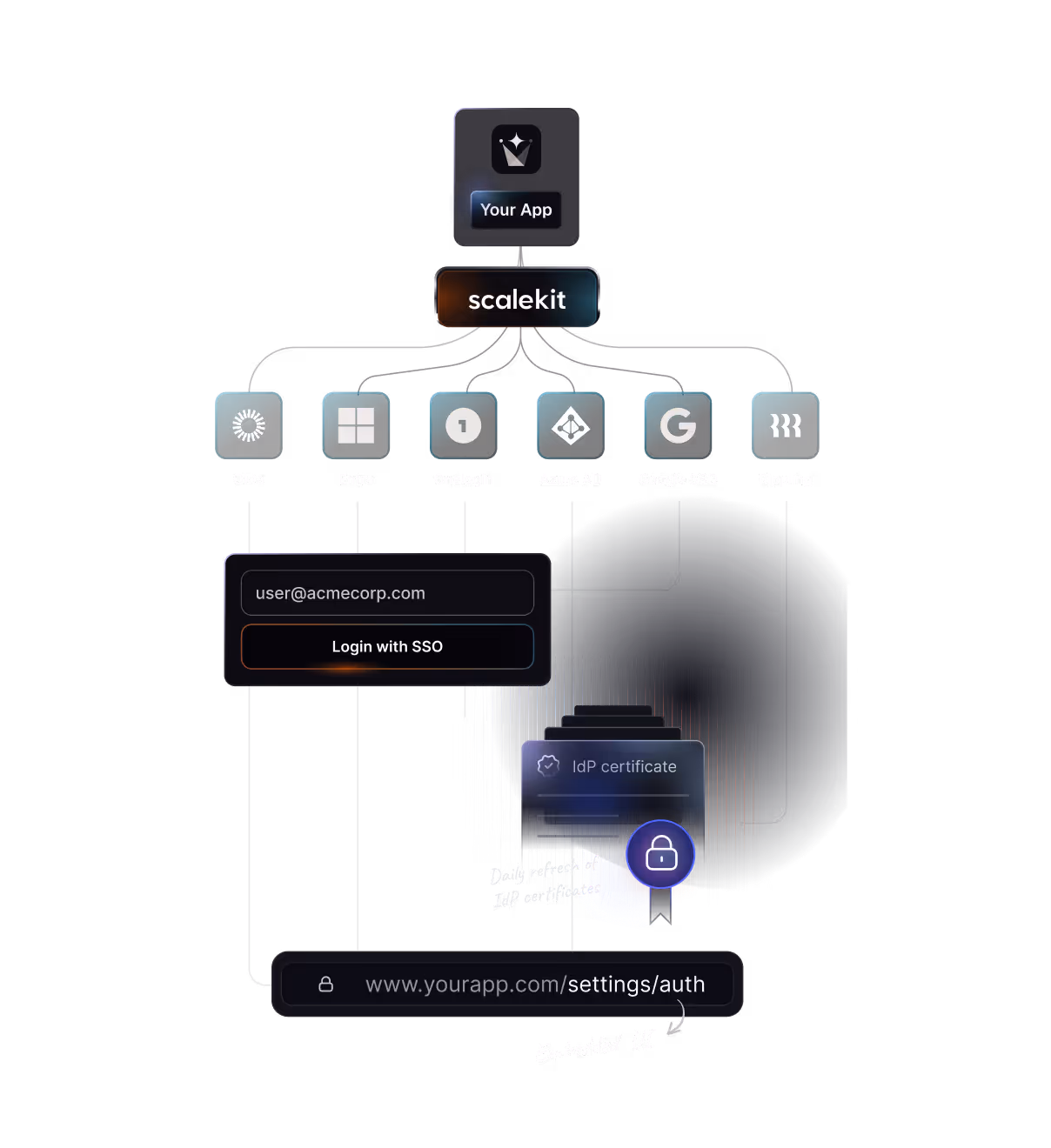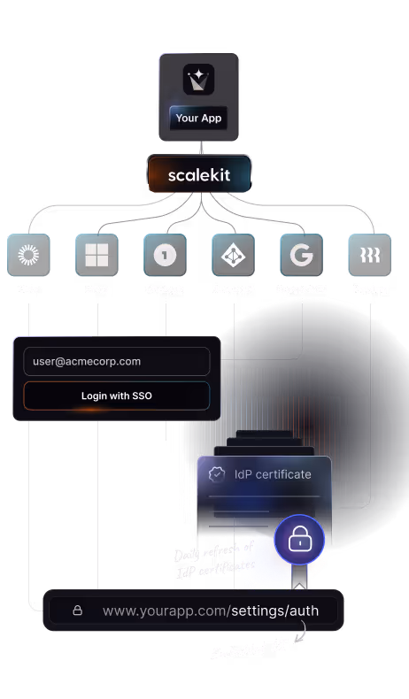 const authUrl = scalekit.getAuthorizationUrl ('https://yourapp.com/auth/callback',opts };