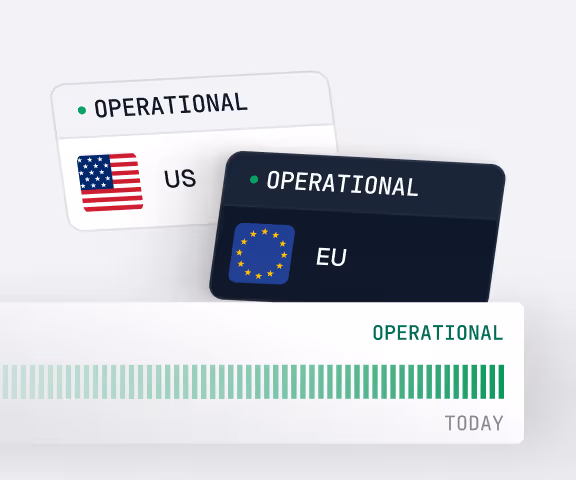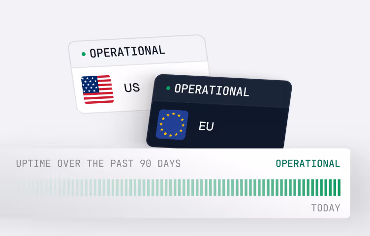 Deploy to US or EU. Your data stays in your chosen region. 99.99% uptime, guaranteed.