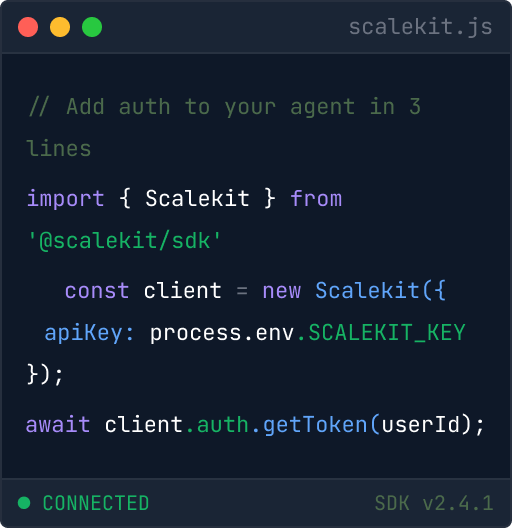 const authUrl = scalekit.getAuthorizationUrl ('https://yourapp.com/auth/callback',opts };