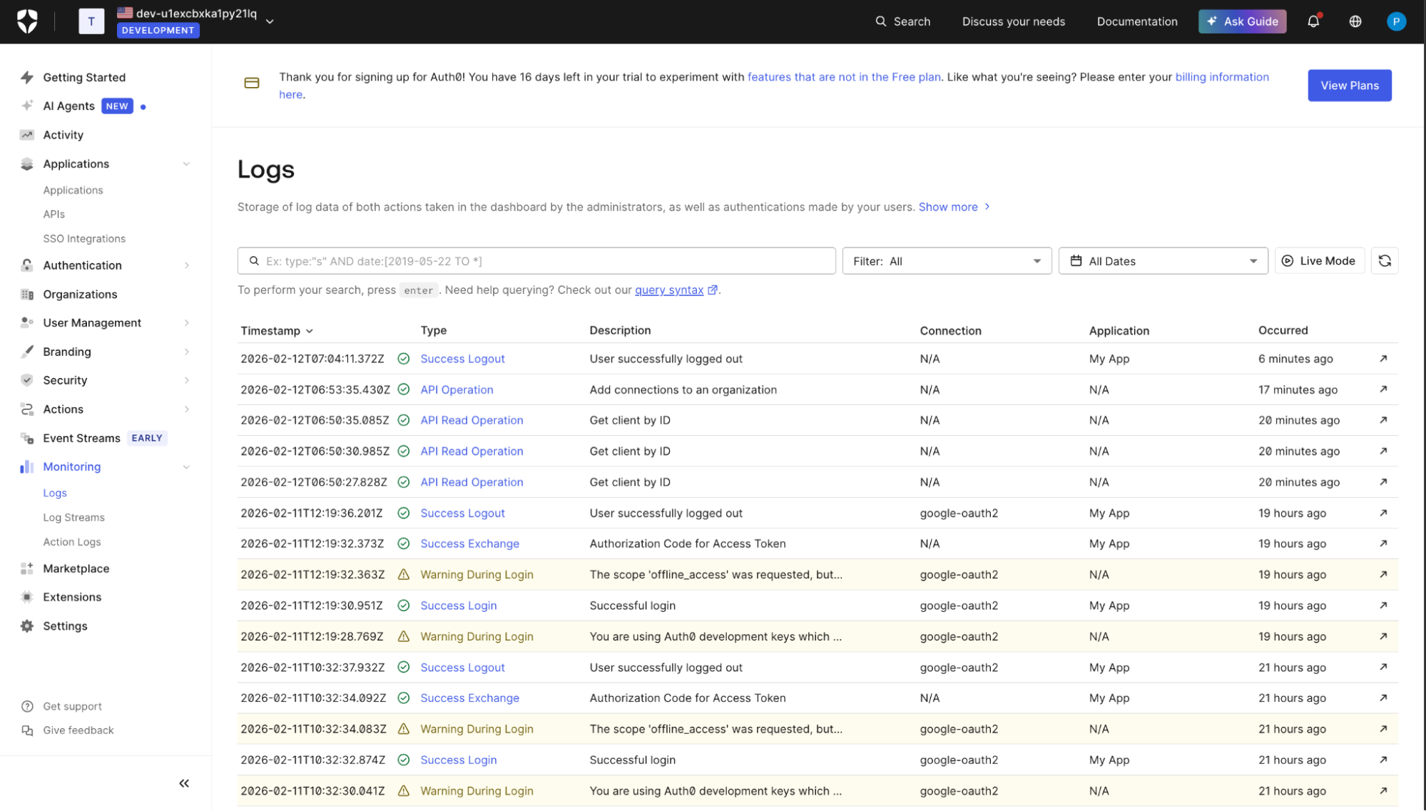 After login succeeds, inspect the user object returned by Auth0 in Auth0 Logs.