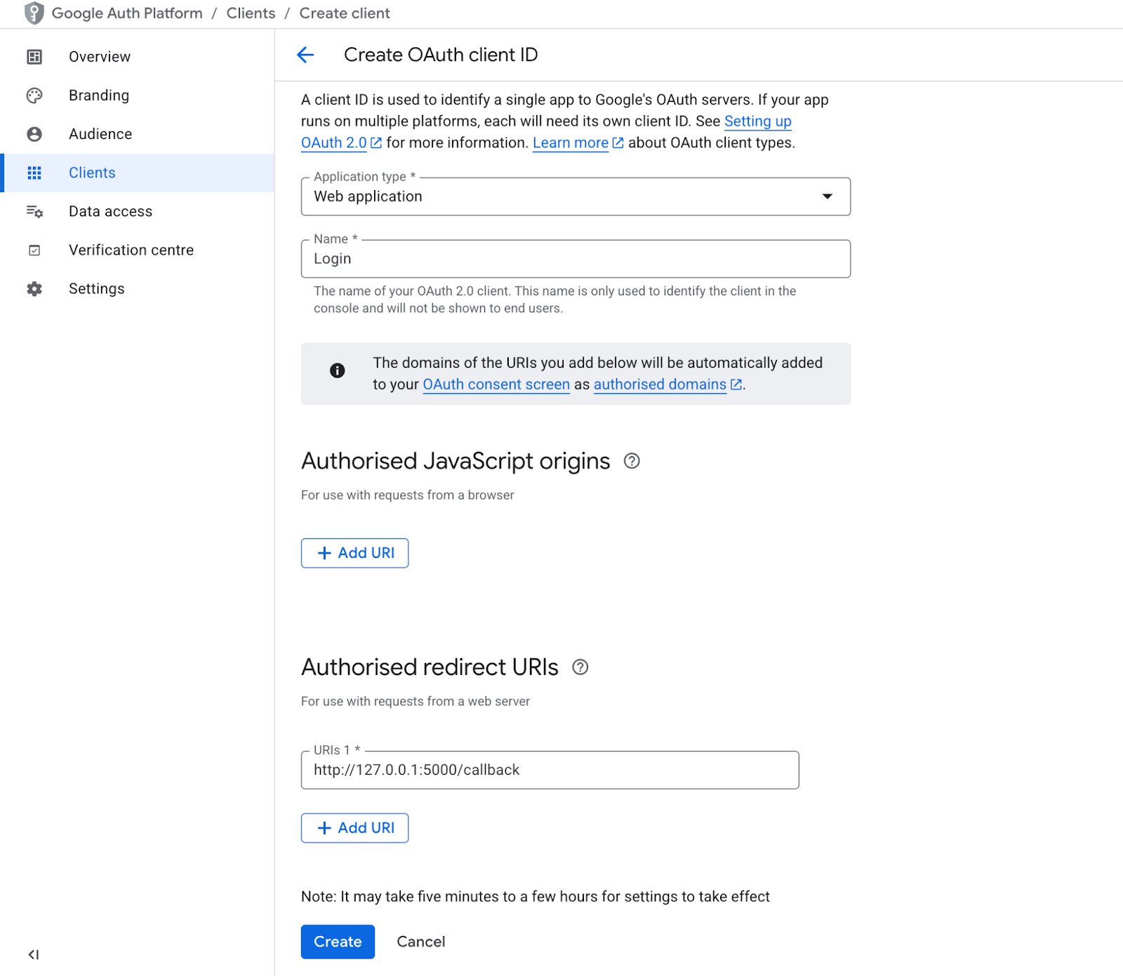 Create the OAuth 2.0 Client that your Flask app will use.