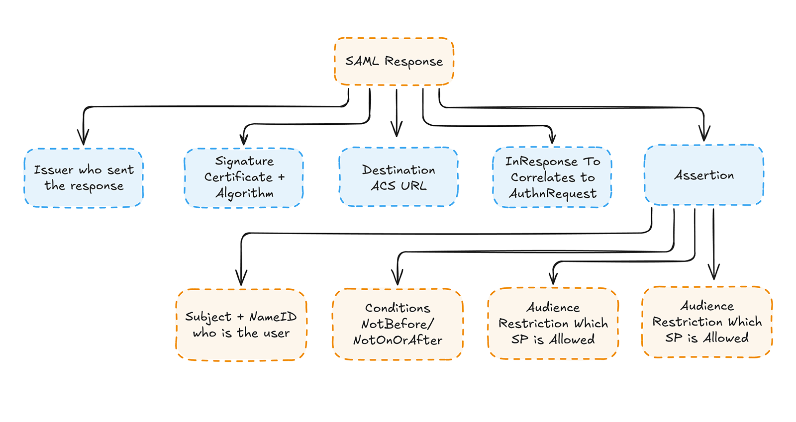 This flow provides the structural context you need to understand where failures occur within a SAML Response.