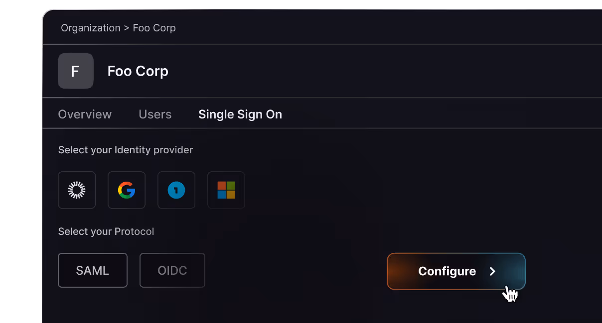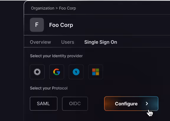 Let organizations manage their own users, roles, auth policies without adding complexity to your codebase