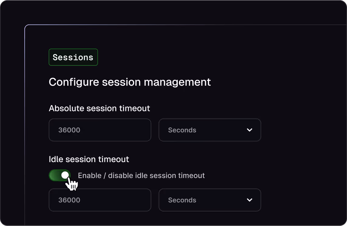 Automatically log users out after inactivity to prevent unauthorized access. Configure timeout and idle limits to match your auth policies